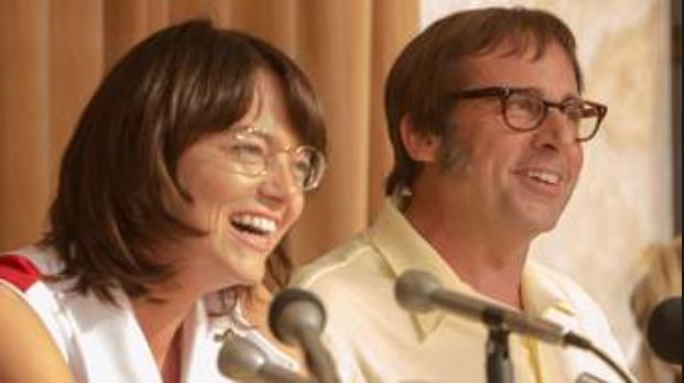 Beaufoy has created a story around a most suitable subject, the tennis great, Billie-Jean King (Emma Stone). The woman is a legend in her sport but has an equally significant background as a crusader for equal rights for women and a trailblazer for sports heroes declaring themselves openly gay. Her romantic affair with Marilyn Barnett (Andrea Riseborough), provides an important sidelight to King’s own ‘battle’ to love the one you want while pursuing the professional struggle of being a sports champion and a crusader for equal rights.