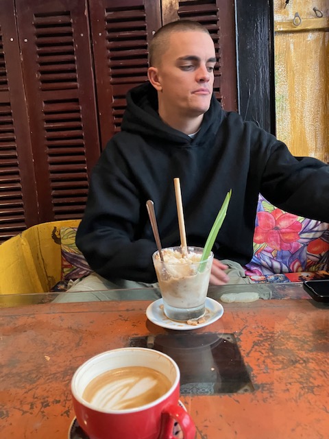 Offered breakfast, I declined and we walked down the street to a seemingly unoccupied cafe. Pancakes with honey and banana and good egg coffees. The adventure was about to begin.