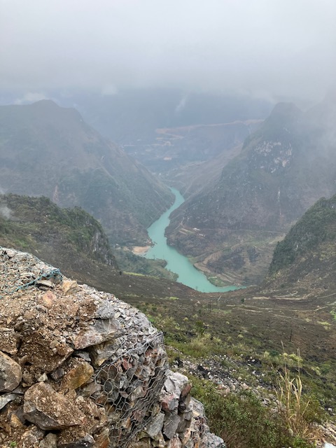 When we stopped for what the late Tour de France commentator Phil Liggett described as a comfort break, I began to appreciate the terrain a little more. The ride was fun. Despite the impost and my shifting bottom, despite the mist becoming rain as we climbed higher, I just knew this was going to be good. Three days was going to test endurance but it was getting prettier all the time. You begin to tell yourself if so many people do it there must be some merit to it….and there were a lot of people doing it. Tourist groups, individuals on pillion with an experienced Vietnamese rider, were plentiful. I began to realise the enormity of what Dexter was achieving as very fit-looking young men and women of all nationalities sat behind the local guys doing the chauffeuring.
